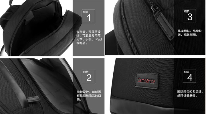3、容量:超大容量,內(nèi)部多隔層,可放置專用筆記本、手機、iPad等電子產(chǎn)品