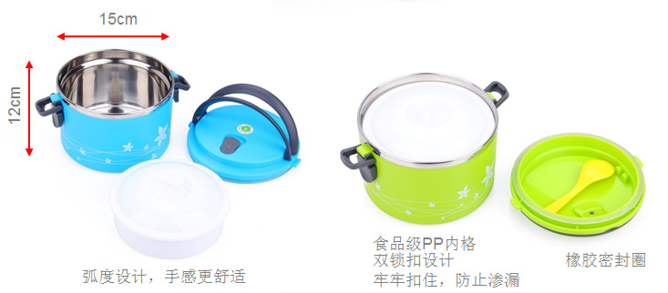 賣(mài)點(diǎn):外殼采用AA級(jí)別PP塑料,內(nèi)膽采用優(yōu)質(zhì)無(wú)磁不銹鋼。菜格可用于微波爐加熱。飯盒密封性能極好